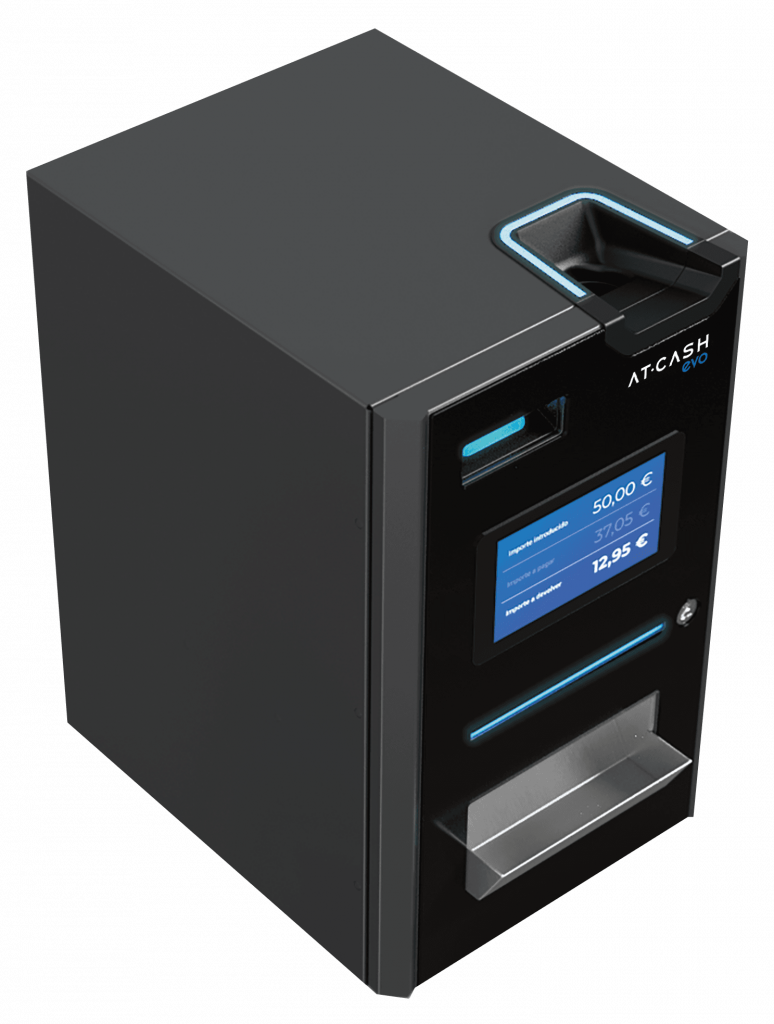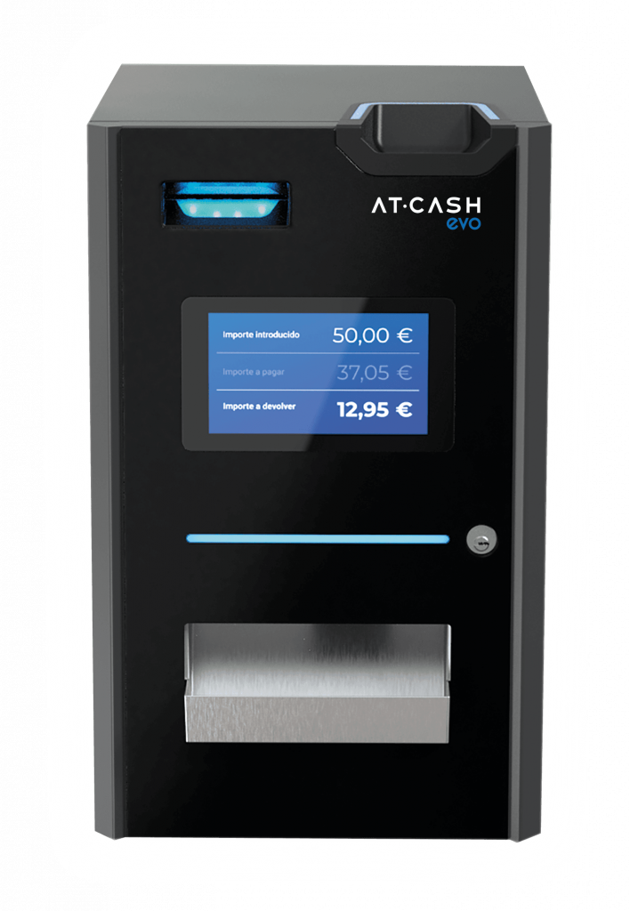 AT·CASH EVO es la máquina de autocobro inteligente ideal para comercios, hostelería, clínicas o cualquier negocio donde se maneje efectivo. Este dispositivo ofrece una gestión moderna, ágil y sin errores, transformando por completo tu forma de trabajar